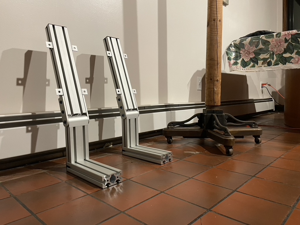 I had 80-20 fabricate me these extrusion brackets to attach the headboard to the bed at an angle (~17°). I should not have specified the heavy duty 40-80, but rather the lite: